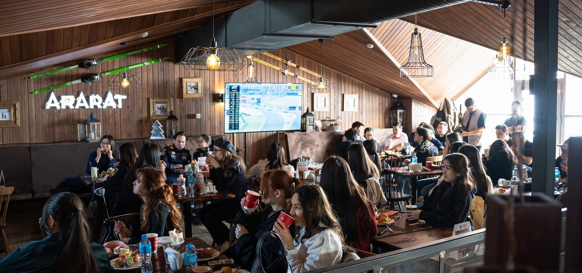 В Алматы зрители собрались в ресторане Oi-Qaragai, расположенном на одноимённом горнолыжном курорте. Свежий воздух, чистые горные пейзажи и отличное настроение объединили 140 гостей и клиентов.